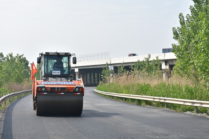 在京滬變更項(xiàng)目下穿劉瓦線施工現(xiàn)場(chǎng),瀝青路面加高正在緊張的鋪設(shè)中,“剛出鍋”熱騰騰的瀝青料、現(xiàn)場(chǎng)施工人員肆意揮灑的汗水、來(lái)回碾壓的施工機(jī)械,用奮斗譜寫(xiě)勞動(dòng)的意義。