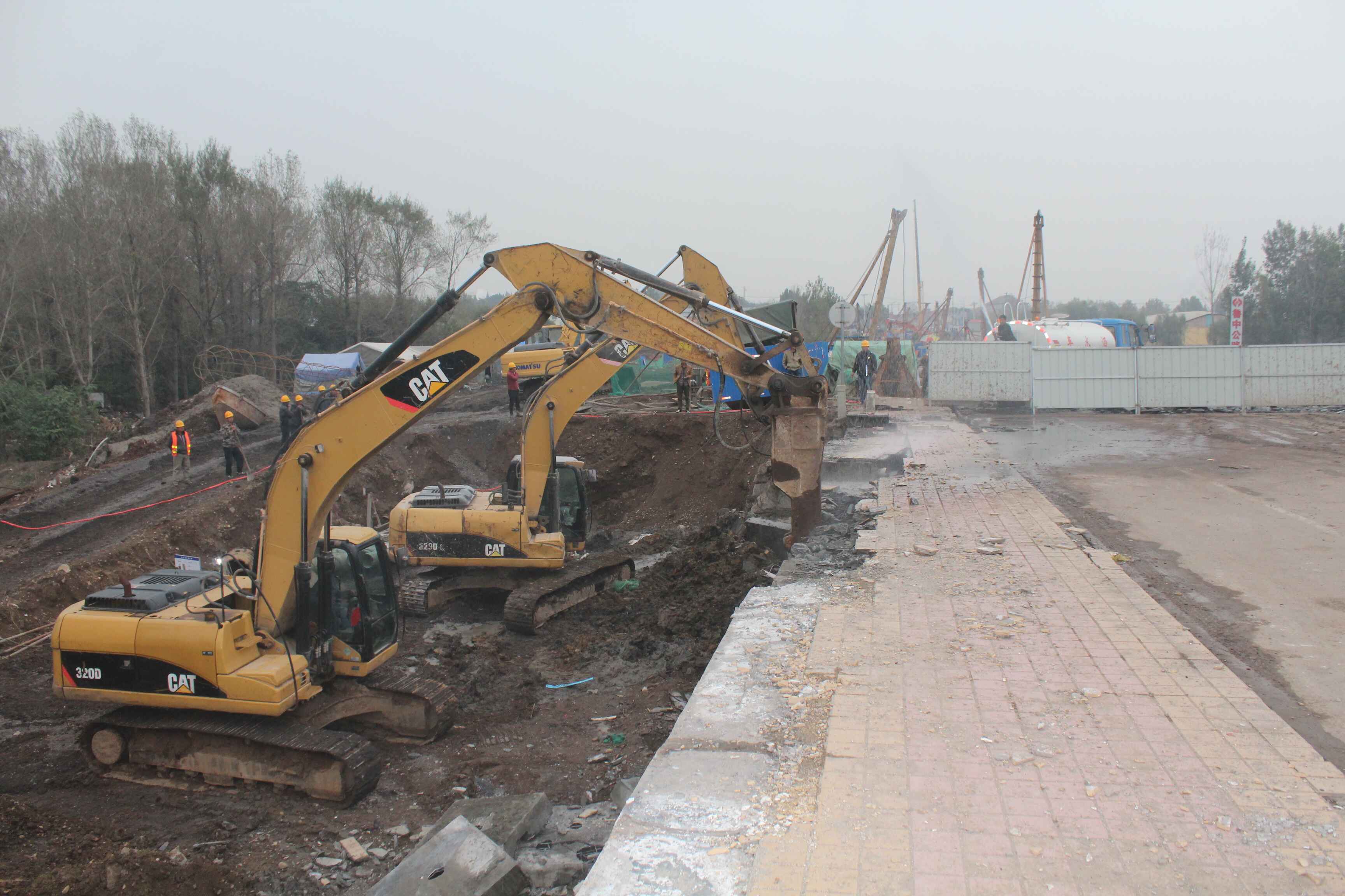 經(jīng)過前期的準備工作,現(xiàn)拆除趙瓦危橋的工作進入拆除橋體主體結(jié)構(gòu)的階段。上午7時,省道S102濟青線路面中大橋工程二標項目部在趙瓦村孝婦河橋頭召開技術(shù)安全交底會,對趙瓦孝婦河橋拆除工作進行現(xiàn)場交底。15點58分,通過現(xiàn)場交底工作,發(fā)現(xiàn)準備工作中尚存在不足之處,經(jīng)過分析和補充,在安全防范工作進一步加強后,拆除工作在水炮抑塵的配合下展開混凝土構(gòu)件破拆作業(yè)。