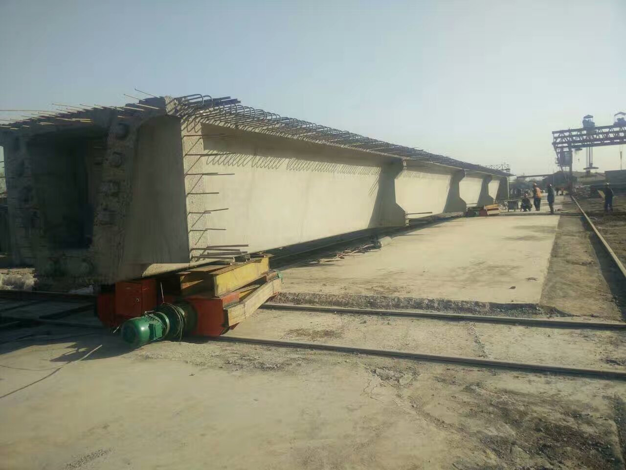 我部張店梁場預(yù)制任務(wù)主要包含:箱梁250片,先張空心板165片,白尼河后張空心板224片,小蓋板1051片。由于預(yù)制任務(wù)量大,存梁、移梁問題一直困擾在我們的心頭。但在不斷摸索中,我們逐漸找到了解決問題的辦法——橫向移梁機(jī),它的使用揮散了近期以來困擾在我們心頭的陰霾。移梁問題得以順利解決,不但為下一步預(yù)制工作提供了工作面,也極大的鼓舞了我梁場全體員工對圓滿完成施工任務(wù)的信心和決心。